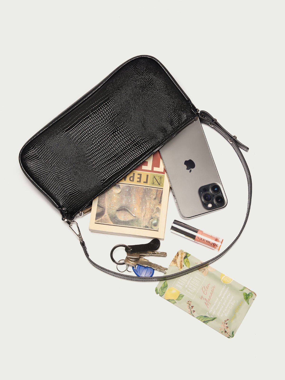 Женская сумка выполнена из натуральной кожи. Закрывается на металлическую молнию. Внутри основного отделения вместительный карман на молнии и 2 накладных кармана. Для ношения сумки на сгибе руки и на плече имеется короткий регулируемый плечевой ремень (min: 560мм; max: 590мм). Цвет фурнитуры:никель. Внутренний материал: подклад. Внешний размер: 280х140х050. Вмещает в себя формат А6. Упаковка: мешок из спанбонда.